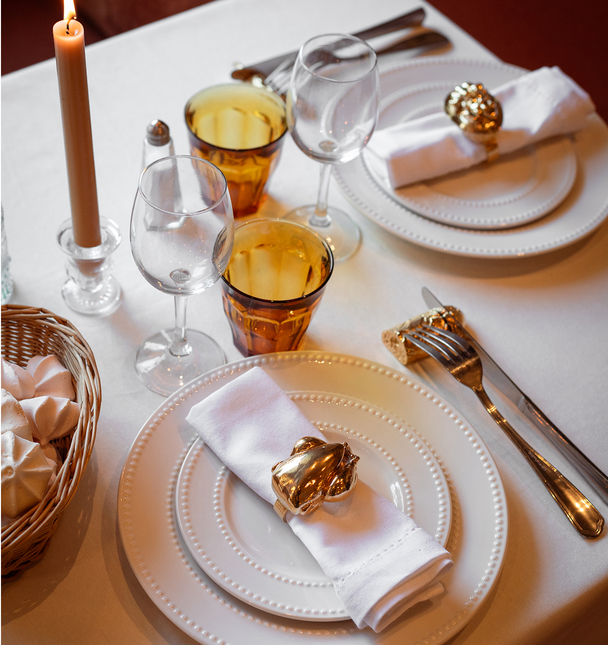 Des centres de table aux ronds de serviette et portes couverts, chaque création audacieuse et élégante, entièrement fabriquée dans nos ateliers français, transforme la table en véritable scène sculpturale.