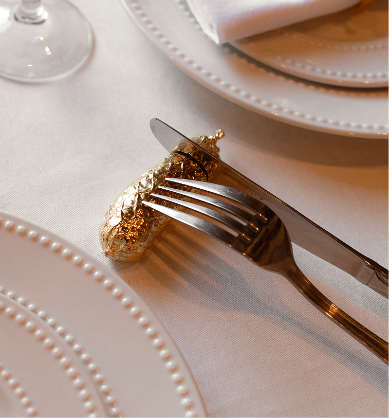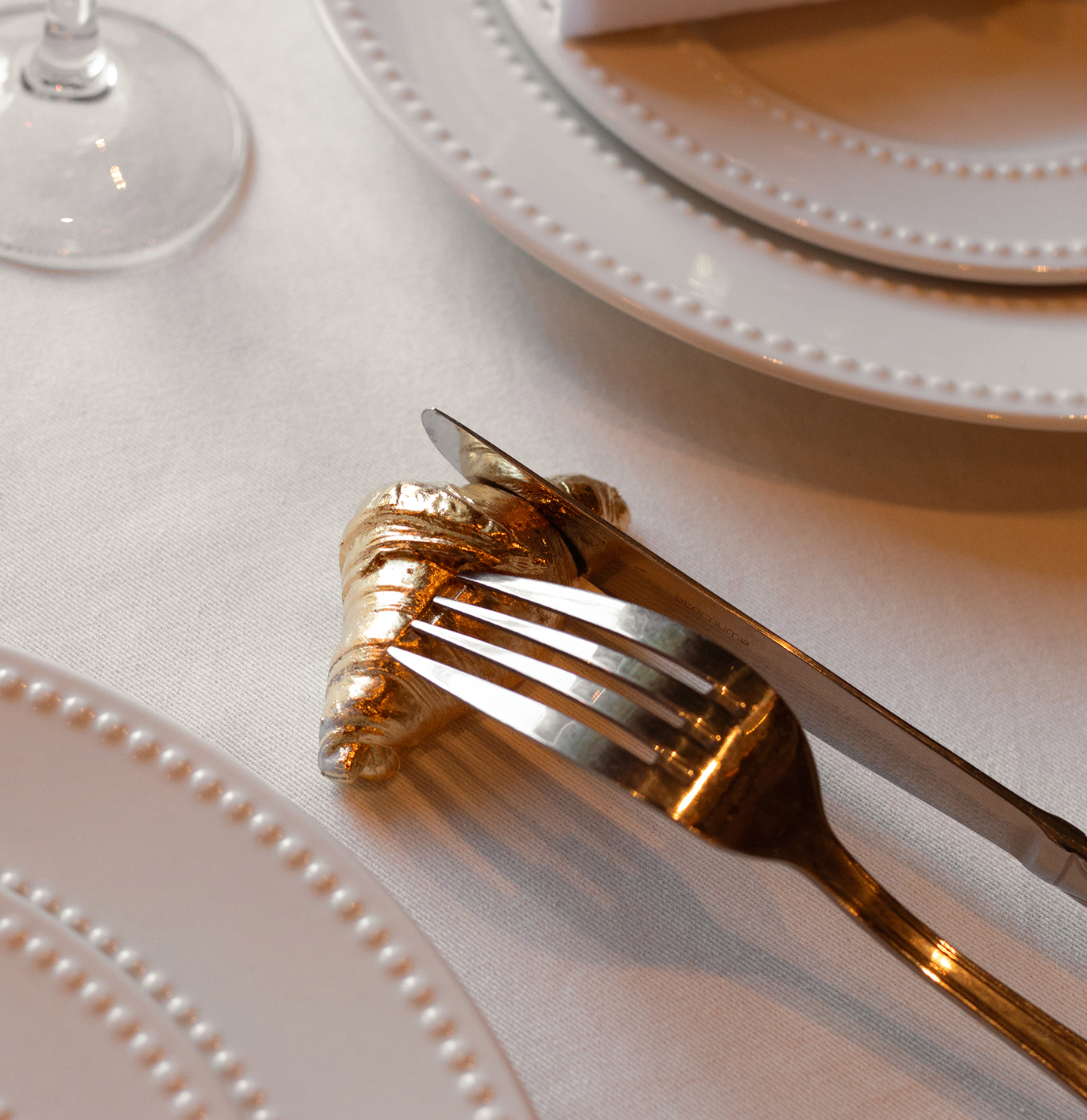 Pensés comme des pièces de décoration de table à part entière, nos ronds de serviette et portes couverts sculpturaux associent artisanat, design et un clin d’œil à la gastronomie française.